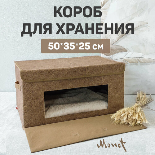Коробка для хранения вещей с крышкой, короб для хранения стеллажный, корзина, ящик, 40*30*25 см, MONET AUTUMN коричневый