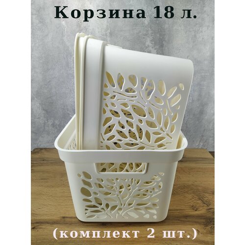 Корзина с крышкой Leaves 18 л. комплект 2 шт.