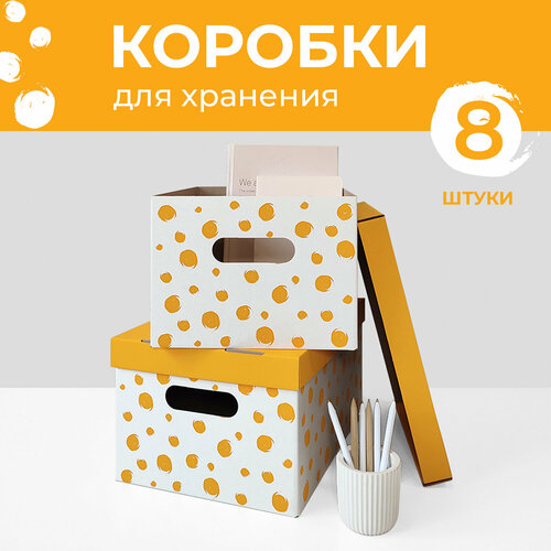 Коробка для хранения вещей с крышкой картонная, 8 шт, Пингла желтый