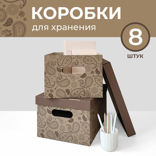 Коробка для хранения вещей с крышкой картонная, 8 шт, Хмель