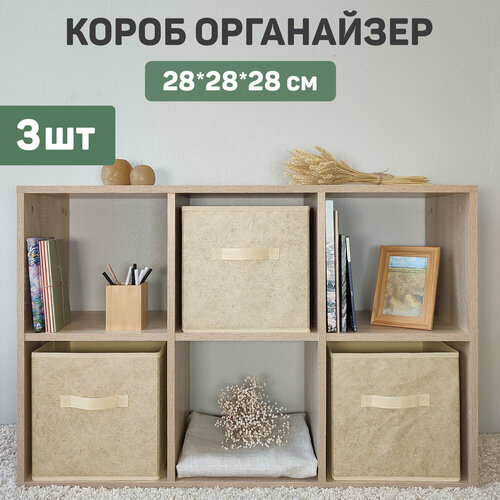 Коробки для хранения вещей, короб для хранения стеллажный, ящик, корзина, набор 3 шт, 28*28*28 см, MONET SUMMER