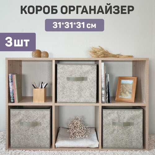 Коробки для хранения вещей, короб для хранения стеллажный, корзина, ящик, набор 3 шт, 31*31*31 см, MONET MORNING