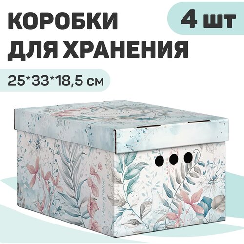 Коробка для хранения Valiant Botanic, 33х25х18.5 см, 4 шт., botanic light