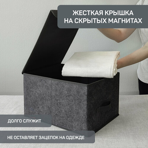 Коробка для хранения Leset home, 25х35х25 см, темно-серый, для вещей, одежды, игрушек