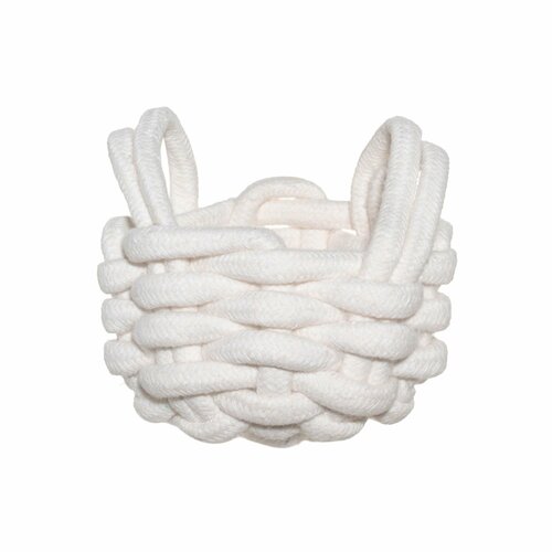 (W)Корзина для хранения, 12х6 см, с ручками, полиэстер, молочная, Крупное плетение, Cosy
