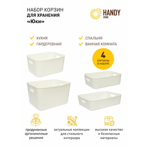 Корзина пластиковая для хранения Handy Home, набор из 4 шт