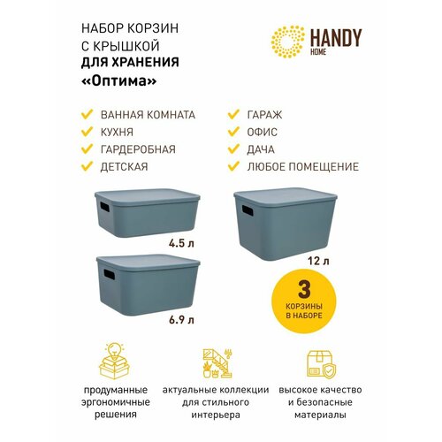 Набор 3 шт. корзина пластиковая с крышкой Handy Home