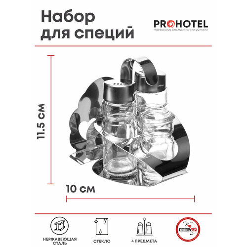 Набор для специй 4 предмета на подставке Prohotel H=115, L=85, B=100мм, серебристый