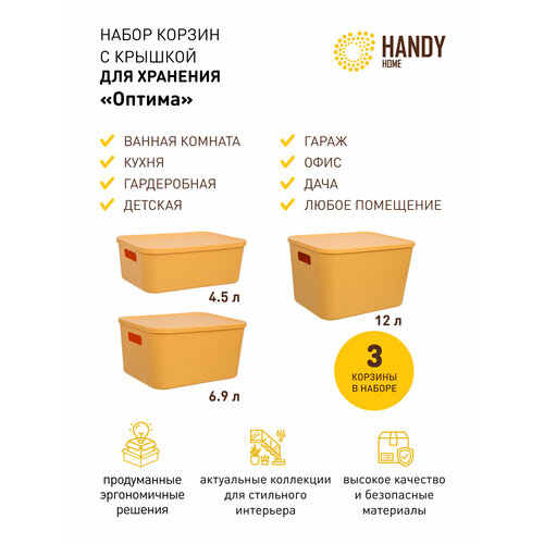 Набор 3 шт. корзина пластиковая с крышкой Handy Home, желтый