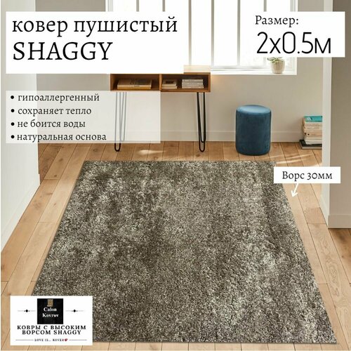 Ковер Shaggy пушистый кофейный светло шоколадный с высоким ворсом мокко 2x0.5м
