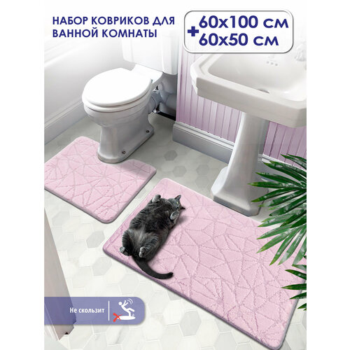 Комплект ковриков Shahintex PP 001, 60x100+60x50 см, 100х60 смдля туалета, фламинго