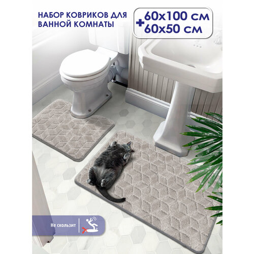 Комплект ковриков Shahintex PP 002, 60x100+60x50 смдля туалета, перламутр