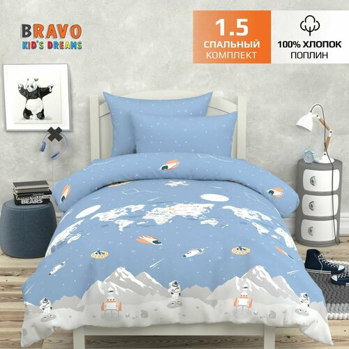 Постельное белье 1,5 спальное BRAVO KIDS DREAMS Марс космос, хлопок, поплин, наволочка 70х70 /для детей