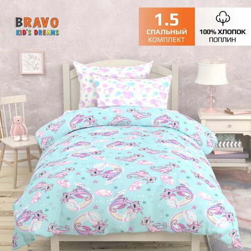 Постельное белье 1.5-спальное BRAVO KIDS DREAMS Единороги / хлопок / поплин / наволочка 70*70 /для детей