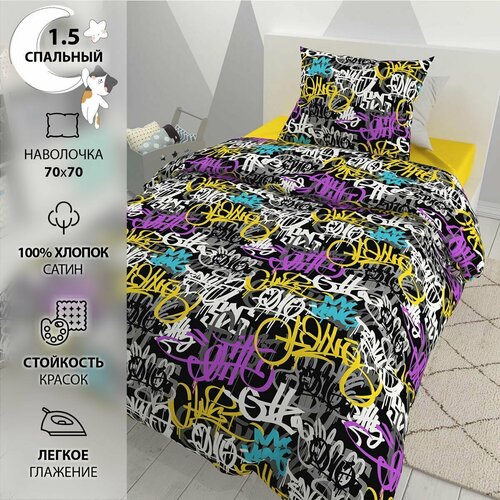 Постельное белье 1.5-спальное BRAVO KIDS DREAMS Граффити / хлопок / поплин / наволочка 70*70 /для детей