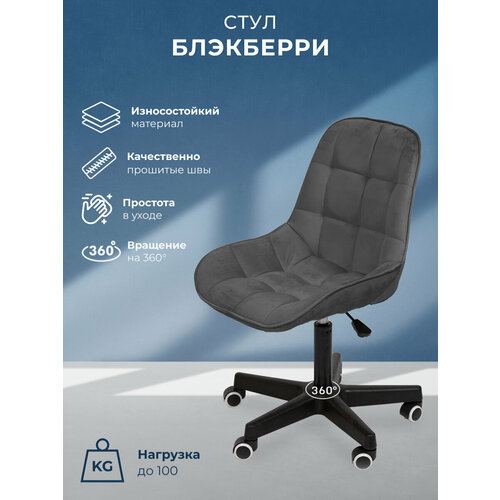 Стул для кухни, дома, офиса Блэкберри, пластиковое пятилучье, Уютный мастер, темно -серый