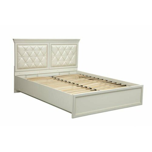 Кровать Олимп Эльмира 40.13-03 1600 с ортопедическим основанием Белый/Белая кожа патина