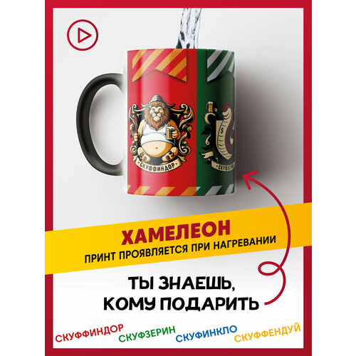Керамическая кружка хамелеон прикол скуфультеты Гарри Поттера для скуфов: Скуффиндор, Скуфзерин, Скуфинкло, Скуффендуй