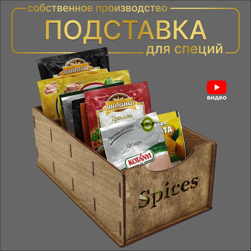Кухонная подставка органайзер для специй с 4 отсеками цвета орех