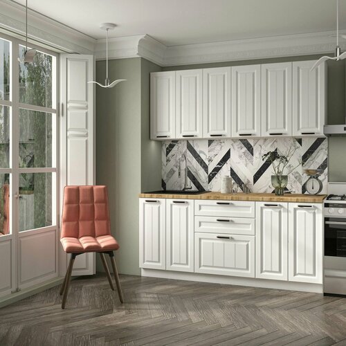 Готовый кухонный гарнитур Прага 180 см Белый/Белое дерево, без столешницы