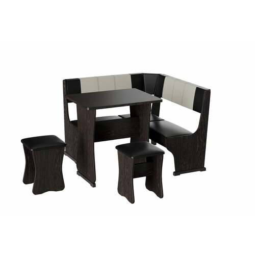 Кухонный уголок БонМебель Гамма Тип 1 мини, венге цаво/Экокожа шоколад/беж, стол кухонный, стулья для кухни , скамья угловая