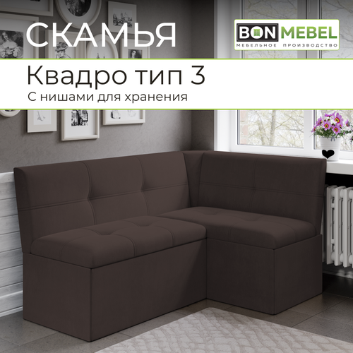 Кухонный уголок BONMEBEL Квадро тип3, ТК Коричневый, 149х105х82 см