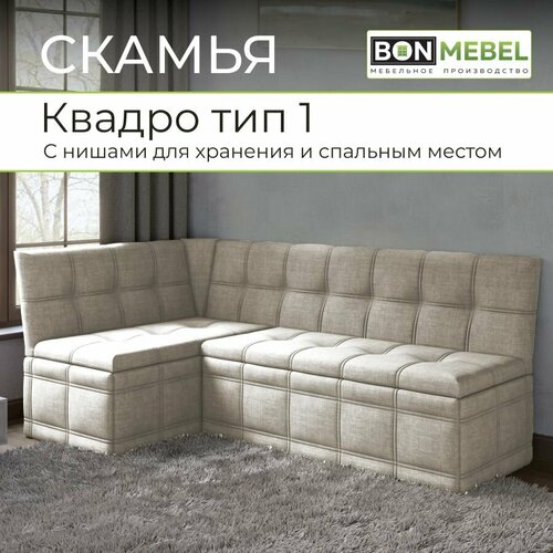 Кухонный уголок Квадро Тип 1 Исп 2, БонМебель, ТК Капри, Бежевый, со спальным местом, диван