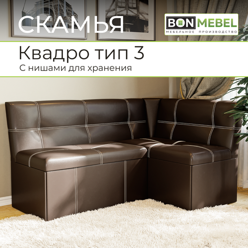 Кухонный уголок BONMEBEL Квадро тип3, КЗ Коричневый, 149х105х82 см