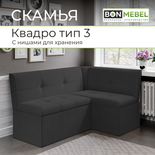 Кухонный уголок BONMEBEL Квадро тип3, ТК Серый, 149х105х82 см
