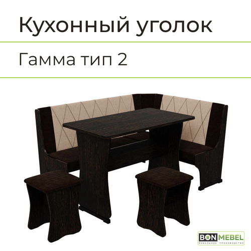 Кухонный уголок Гамма Тип 2 BONMEBEL Дуб Венге/ТК Коричневый/Беж,150x110x80 см