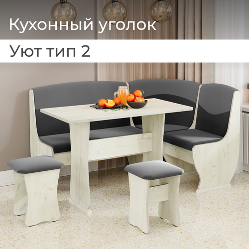 Кухонный уголок Уют Тип 2 Дуб Крафт белый/ТК Темно-серый серый