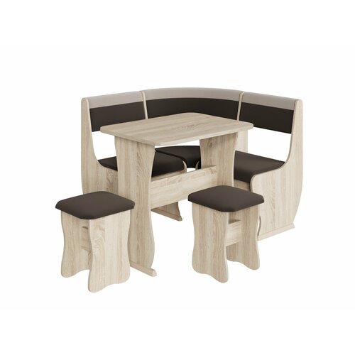 Кухонный уголок BONMEBEL Гамма Тип 2, ЛДСП Дуб Сонома/ТК Коричневый/Бежевый, универсальный угол, стол, диван, табуреты