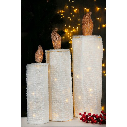 Новогоднее украшение для дома "Свечи" с гирляндой 3 шт, золотые