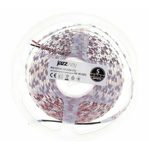 Светодиодная лента jazzway PLS 2835/60-W IP20, 5 м, светодиодов: 300 шт., 1 Вт, белый, 6500 К