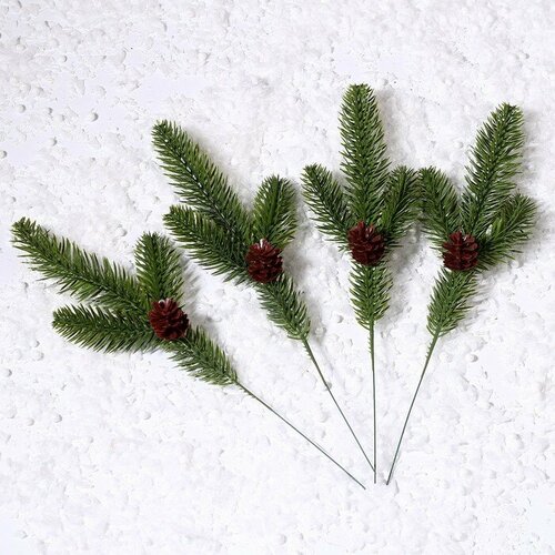 Декор «Веточка ели с шишкой», набор 4 шт, размер 1 шт. — 28 см