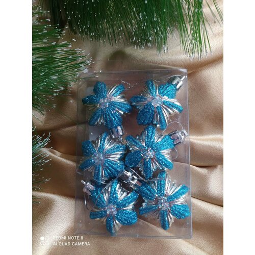 Украшение ёлочное "Набор из 6 звезд 6 см, голубой "