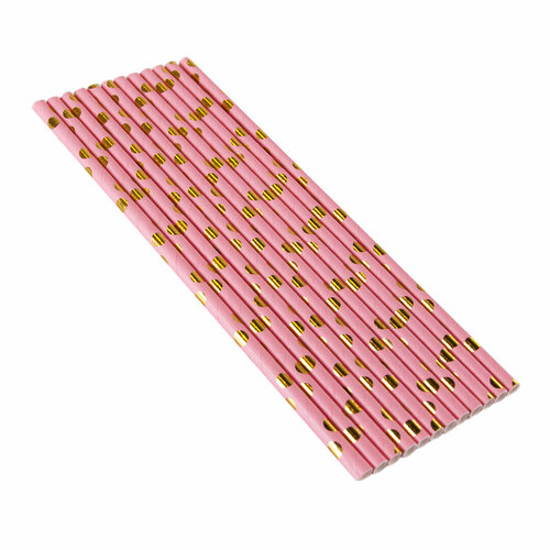Трубочки для коктейлей, Горошек, Розовый/Золото, металлик, 12 шт.