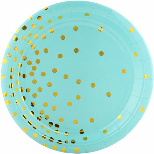 Тарелки (9'/23 см) Золотое конфетти, Светло-голубой/Золото, Металлик, 6 шт.