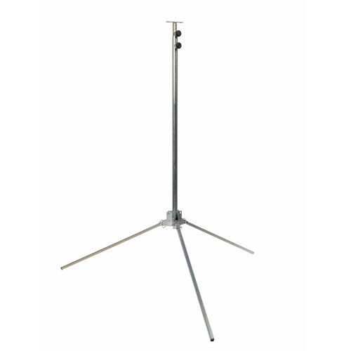 Оснащена треногой для установки и телескопическим механизмом регулировки высоты, что позволяет легко и быстро настроить мачту под конкретные нужды. Металлические элементы соединения обеспечивают прочность и долговечность конструкции, а также устойчивость к механическим повреждениям.