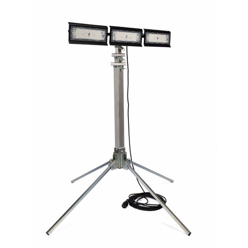 Прожектор уличный светодиодный на облегченном штативе REXPO 3 метра, 3*50 Вт, 6500 К, IP65, 220 В, черный