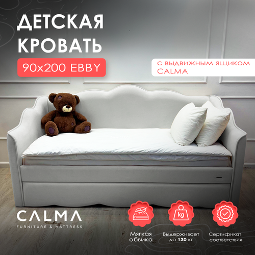 Детская кровать Ebby с полновыкатными ящиками, 90х200 см, пепельный.