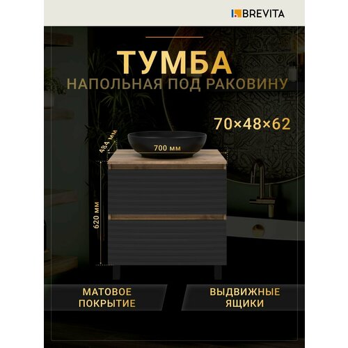 Тумба под раковину Brevita Dakota - 70 (черная) напольная