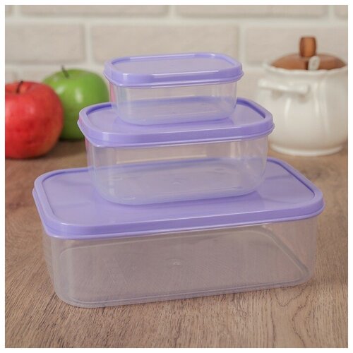 Набор контейнеров пищевых прямоугольных Доляна, 3 шт: 150 мл, 500 мл, 1,2 л, цвет сиреневый