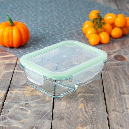 Контейнер двухсекционный из жаропрочного стекла Доляна «Клик» 620 мл, 17,8×13,2×6 см, с крышкой