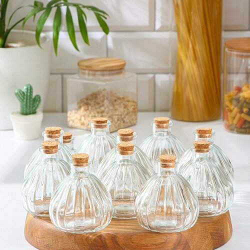 Доляна Набор стеклянных банок для сыпучих продуктов с пробковой крышкой Доляна «Парфе», 250 мл, 8,7×9,4 см, 12 шт