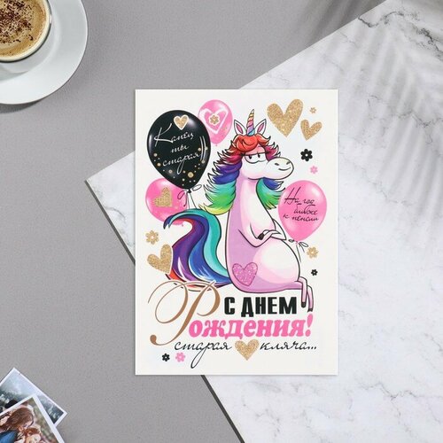 Почтовая карточка "С Днем Рождения! старая кляча" единорог, 11,1х15,5 см 9645306