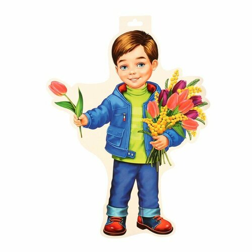 Плакат фигурный "Мальчик" букет тюльпанов, 34,8х41 см 9473494