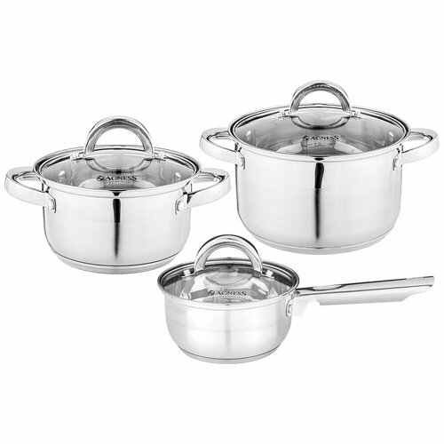 Набор кастрюль и ковш со стекл. крышками 6пр.0,9/2,6/3,5 л. Agness (182492)