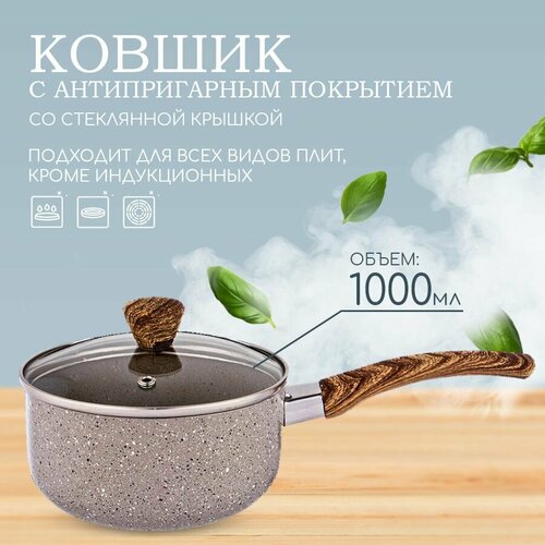 Ковшик С Антипригарным Покрытием И стеклянной крышкой 1000 Мл Без упаковки KSG-906-205