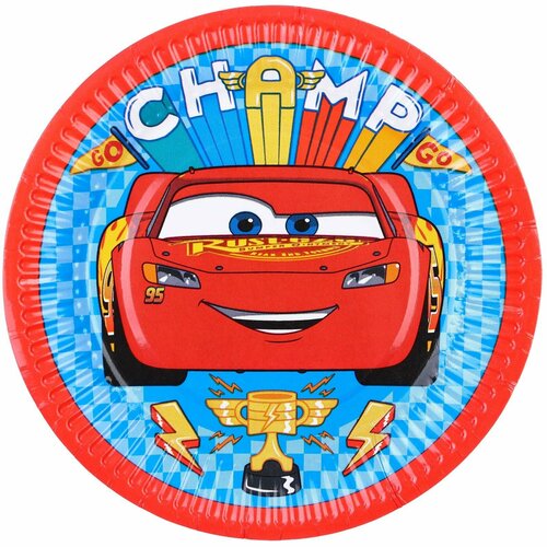 Тарелка бумажная "С Днем Рождения!", 18 см, Тачки